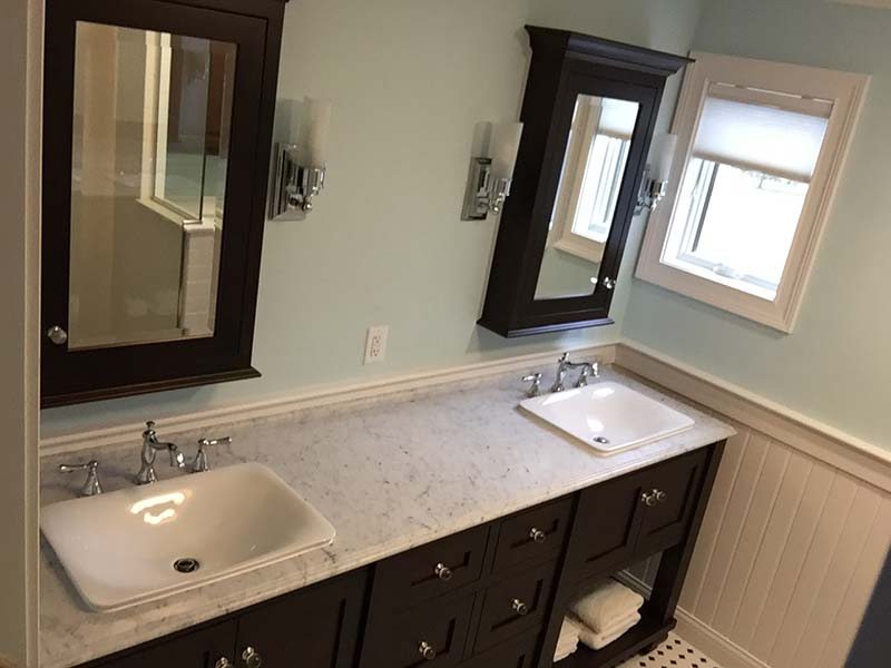 Our bathroom projects consist of counters, vanities, tub surrounds, and showers made from granite, quartz, porcelain, quartzite, marble, and soapstone.